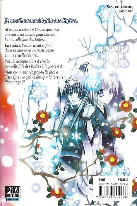 Je serai la nouvelle fille des Enfers. Aï Enma a révélé à Yuzuki que c'est elle qui a été choisie pour devenir la nouvelle fille des Enfers. En réalité, Yuzuki avait enfoui dans sa mémoire un triste passé et une cruelle réalité... Yuzuki accepte alors d'être la nouvelle fille des Enfers à la place d'Aï. Mais comment réagira-t-elle face à cette épreuve qui ne fait que la torturer davantage ?!