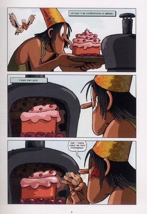 En ce temps là, le rhinocéros arborait un magnifique costume bien ajusté fermé par trois boutons. Quand il faisait trop chaud, l'animal n'avait qu'à ôter sa peau pour se baigner tranquillement... Jusqu'au jour où un jeune garçon voulut lui faire une farce, et glissa des miettes de gâteau dans son costume...