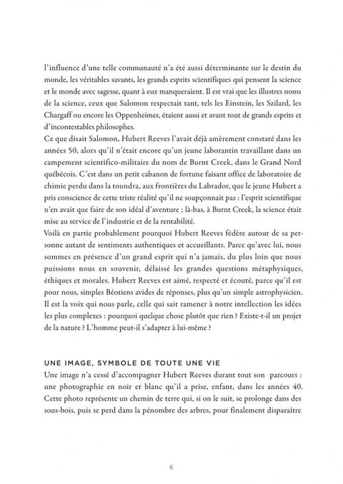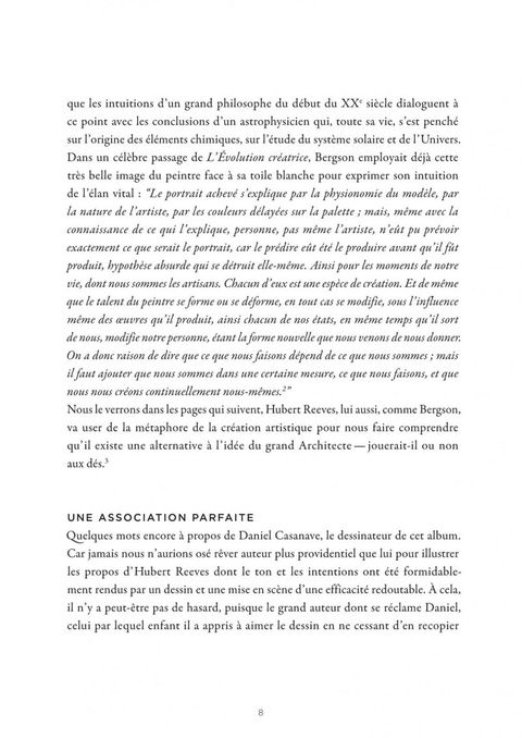 Avec le talent de vulgarisateur qu'on lui connaît, Hubert Reeves explique, en faisant d'habiles parallèles avec la créativité humaine, ce que l'on sait aujourd'hui de la création de l'Univers. Avec ses mots et ses idées simples, épurées comme des haïkus, Hubert Reeves arrive à faire comprendre l'infiniment complexe, tout en amenant ses lecteurs au bord du gouffre métaphysique.