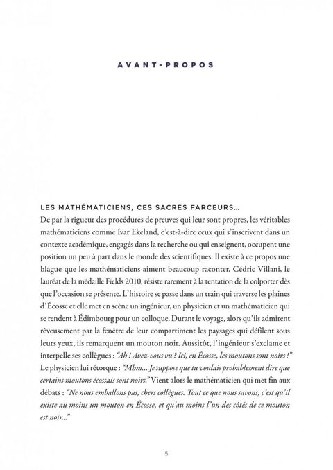Probabilités, absence de certitudes, impossibilité de prévoir ce qu'il va advenir, théorie du chaos. De tout temps, le hasard accompagne l'homme et ne cesse de le fasciner. Mais qu'en pense réellement un grand mathématicien ? Cet essai en bande dessinée nous explique de façon simple et ludique le hasard et ses mystères ainsi que les stratégies qui peuvent nous aider à mieux appréhender les prévisions, la chance et les jeux de hasard !