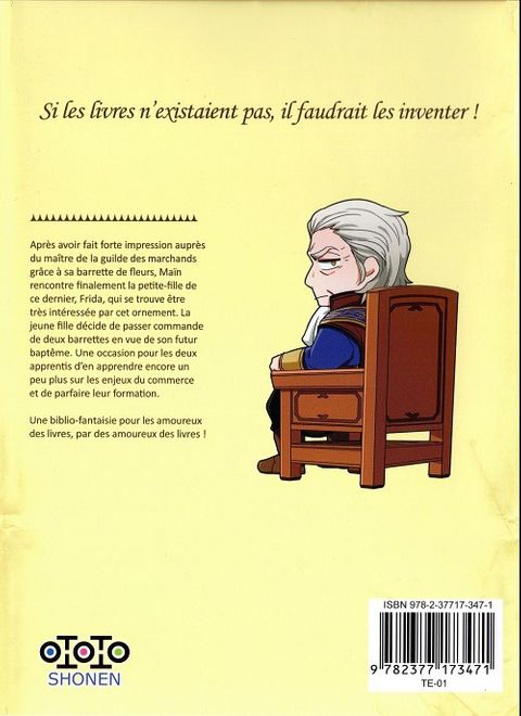 Après avoir fait forte impression auprès du maître de la guilde des marchands grâce à sa barrette de fleurs, Maïn rencontre finalement la petite-fille de ce dernier, Frida, qui se trouve être très intéressée par cet ornement. La jeune fille décide de passer commande de deux barrettes en vue de son futur baptême. Une occasion pour les deux apprentis d’en apprendre encore un peu plus sur les enjeux du commerce et de parfaire leur formation.