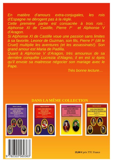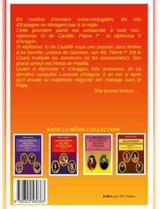 En matières d'amours extra-conjugales, les rois d'Espagne ne dérogent pas à la règle. Cette première partie est consacrée à trois rois : Alphonse IX de Castille, Pierre Ier et Alphonse V d'Aragon. Si Alphonse XI de Castille voue une passion sans limite à sa favorite, Leonor de Guzman, son fils, Pierre Ier (dit le Cruel) multiplie les aventures (et les assassinats !). Son grand amour est Maria de Padilla. Quant à Alphonse V d'Aragon, très amoureux de sa dernière conquête, Lucrezia d'Alagno, il en est si épris qu'il envoie sa maitresse négocier son mariage avec le Pape !