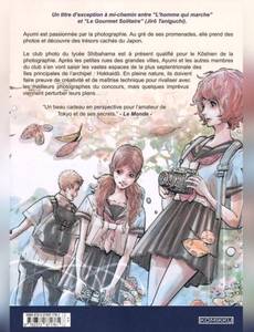 À travers cette aventure lyrique, Ayumi, jeune étudiante en photographie, nous entraine dans les quartiers cachés de Tokyo dans lesquels il est possible de saisir des moments uniques et magiques, reflets de la pluralité de Tokyo. Du mémorial pour les écrivains et artistes à Tabata à la foire d'Asakusa non loin du célèbre temple, cette jeune photographe nous entraine avec émotion dans des univers bien réels où tout instant peut être saisi offrant une nouvelle vision, unique de la capitale du Japon. Une fiction tellement liée à la réalité qu'elle dessine une nouvelle forme de guide en offrant un voyage unique.