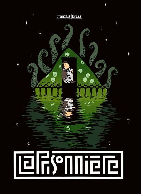 Après avoir perdu son personnage féminin dans un labyrinthe vertical de cases comme autant de conduits de canalisation, Stanislas Gros la campe dans un étourdissant jeu de miroirs. « Qui suis-je ? Et qu’est-ce que je fais ici ? Pour quelle raison je suis enfermée ? » s’interroge la prisonnière, encrée dans le noir complet des cases, exceptés ses monologues intérieurs et elle-même. La jeune femme amnésique cherche à s’évader du donjon où l’a enfermée un savant fou, Monoteuthis, qui lance à sa poursuite des rats dont elle réchappe, puis des robots aux pattes d’araignées. Ce dernier menace les habitants écolos d’Agharta d’envoyer son armée sur eux s’ils n’exploitent pas à nouveau les énergies fossiles et n’organisent pas comme autrefois une grande course d’automobiles.Stanislas Gros imagine ainsi un savant fou colérique en claquettes, ridicule dans son déguisement pour menacer les habitants d’Agharta, et nostalgique de l’époque du pétrole et des courses automobiles. Ses esclaves robots, pilotés par des poulpes maniant le subjonctif imparfait, pouvant se transformer en automobiles tels des transformers, sont tout aussi inadaptés dans cette ville tout en rondeurs et couleurs, alimentée par des éoliennes, dont les habitants se déplacent à vélo ou en voilier.