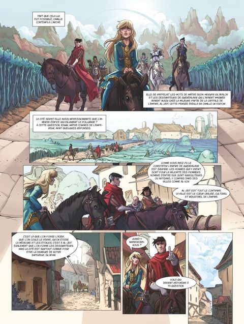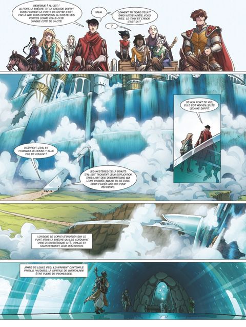 Sains et saufs, Camille, Salim et leurs compagnons atteignent finalement la capitale de l'Empire de Gwendalavir. Envoûtante, la magnifique Al-Jeit offre aux aventuriers un repos bien mérité au sein des mille merveilles que ses rues abritent. En rencontrant l'Empereur, Camille prend pleinement conscience du rôle qu'elle doit tenir dans la guerre qui oppose les humains aux terribles Ts'liches. Mais alors que tout s'annonce bien pour la suite du voyage, un conflit de pouvoir opposant Edwin et Camille met le groupe en péril. La mort se rappelle au bon souvenir des compagnons de la jeune Alavirienne. Lorsque commence enfin le long périple qui va mener le groupe jusqu'à la cité perdue d'Al-Poll, chacun reprend espoir. C'est alors que s'étendent devant les aventuriers les immenses et mornes plateaux d'Astariul, territoire désolé et lugubre ou semble habiter la mort elle-même...
