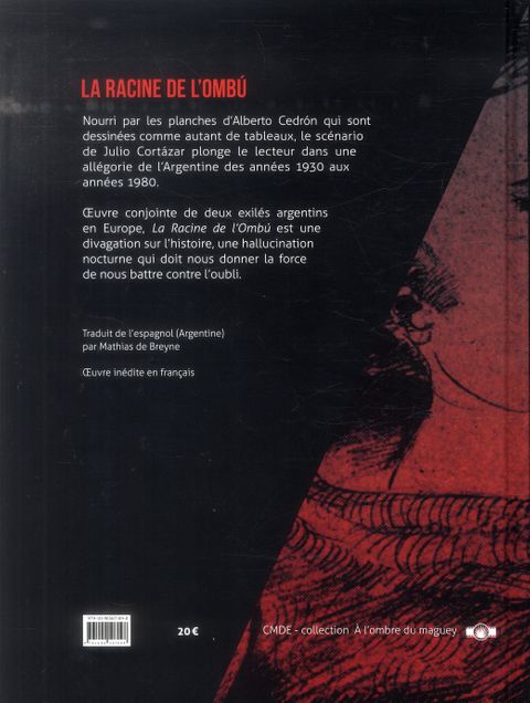La racine de l’Ombú est une œuvre atypique, par sa forme et son histoire. A la croisée entre la BD et le roman graphique, avec des planches originales du peintre argentin Alberto Cedrón que le scénario de Julio Cortázar met en lumière, l’œuvre brouille les frontières génériques et interroge le rapport entre destin personnel et histoire d’un pays marqué par les dictatures, l’exil et les différentes formes de résistance.