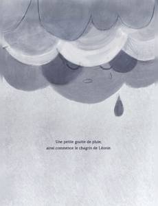 Une allégorie de la tristesse menée avec une grande finesseUne petite goutte de pluie, ainsi débute le chagrin de Léonie. Elle essaie tant bien que mal de ne pas se laisser submerger par cette rivière qui grandit et se déverse partout, mais l’eau et la tristesse sont plus fortes que tout. Heureusement, cela ne dure pas longtemps : après la pluie vient le beau temps...