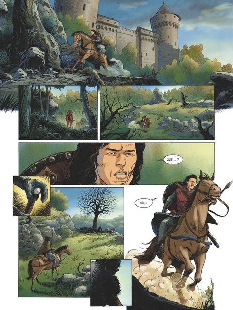 Un cœur vaillant pris entre deux feux : découvrez les aventures du plus valeureux des chevaliers de la Table ronde ! En tentant de venger le chevalier Calogrenant, Yvain blesse mortellement le seigneur Esclados le Roux lors d’un duel. Il est fait prisonnier sur-le-champ ! Le seigneur Esclados était un homme brave, protecteur d’une fontaine magique au cœur de la forêt… Tandis qu’Yvain risque la mort, la servante Lunete va l’aider à s’échapper en lui confiant un anneau qui a le pouvoir de le rendre invisible ! Yvain est libre, mais son cœur ne l’est plus : durant sa captivité, il s’est épris de dame Laudine, la veuve du défunt seigneur. Mais comment parviendra-t-il à se faire aimer de cette jeune femme qui pleure la perte de son époux ? Et si Yvain lui fait allégeance en devenant à son tour protecteur de la fontaine, acceptera-t-elle sa compagnie ? Pendant ce temps, le roi Arthur approche avec ses troupes. La guerre est aux portes du Royaume de Laudine. Yvain saura-t-il faire preuve de courage et de fidélité à la fois envers sa dame et son roi ? Épopée médiévale en trois tomes, cette nouvelle série chevaleresque, tirée du roman de Chrétien de Troyes, mêle amour courtois et aventures initiatiques.
