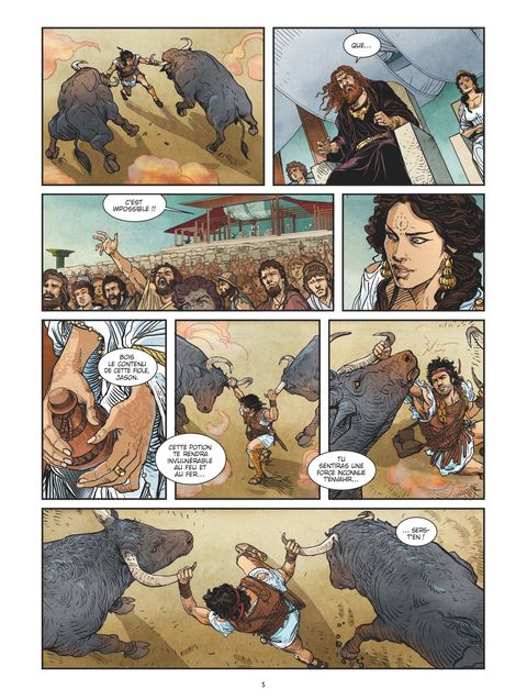 La fin de la quêteParvenus en Colchide, Jason et ses compagnons sont désormais à portée de main de la Toison d'or. Mais avant cela, le héros va devoir se plier aux trois terribles épreuves que lui réserve le roi Aeétès. Dompter les taureaux d'Héphaïstos qui soufflent du feu par leurs naseaux, affronter une horde de guerriers puis le gardien du précieux trésor : un terrifiant dragon. Une tâche qui s'avère impossible, mais c'est sans compter que Jason, outre sa force, son courage et la bénédiction des dieux, dispose d'une alliée de poids : la sorcière Médée qui n'est autre que... la fille du roi en personne !La quête de Jason et les argonautes, probablement l'une des plus célèbres de la mythologie grecque, prend fin avec ce troisième volume !