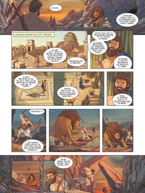 Le plus grand héros de la mythologie grecqueDevenu un héros, Héraclès entame les travaux commandités par Eurystée, roi de Mycènes. Son premier labeur est de terrasser le terrible lion de Némée, dont on dit qu'aucune arme ne peut entailler la peau. Puis, ce sera le tour de l'hydre de Lerne et ses multiples têtes crachant une haleine empoisonnée. Ces deux travaux ne sont qu'un aperçu des défis qui attendent Héraclès, pour lesquelles sa force brute, mais également sa ruse et sa capacité à s'adapter seront sans cesse mises à l'épreuve. Mais c'est le lot d'un élu de Zeus. C'est lot d'un héros pourfendeur du chaos.