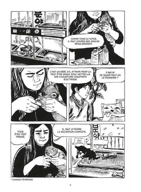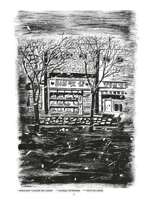 Yuna est une femme de 45 ans qui n'avait jamais envisagé auparavant d'adopter un chien. Avec son mari, ils finissent par en adopter deux : le premier, Carotte, est un corgi mâle de 2 ans. Le second, Patate, est un chien bâtard d'un an. Ils vivent à la campagne à une heure de Séoul. Là, Ils peuvent croiser tous les jours des chiens abandonnés par des gens de la capitale venus dans la région s'en débarrasser. D'autres chiens sont parfois enfermés dans des cages où ils peuvent à peine se tenir debout, maltraités, et mal nourris par leur maître. Avant de disparaître. Ces chiens-là se font tuer pour leur viande. Car les chiens sont considérés en Corée (comme dans d'autres pays d'Asie) comme un mets bon pour la santé.Une facette peu connue de la Corée : les chiens, point de discorde dans le pays ! Animal élevé pour être mangé ou animal de compagnie, c'est même un enjeu des élections en 2022. Keum Suk Gendry-Kim nous livre un récit sensible, qui expose la violence des humains et nous conte l'histoire de son pays, la société contemporaine, et les gens qui y vivent.