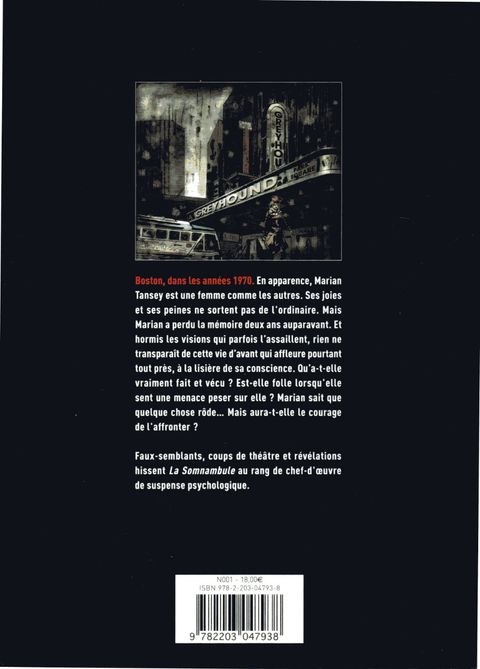 À Boston en ce printemps 1974, peu de choses semblent distinguer Marian Tansey, employée d'une boutique de brocante, des autres jeunes femmes de sa génération. Une certaine réserve, peut-être, et une solitude finalement surprenante chez une trentenaire aussi séduisante. Mais dans le secret de la chambre qu'elle loue chez Ruth, la femme qui l'a recueillie, Marian lève le voile : ses souvenirs les plus anciens ne remontent pas au-delà de deux ans, sa mémoire est comme une passoire. Hormis les images fantomatiques qui l'assaillent régulièrement comme des flashes, à l'état de veille ou dans ses cauchemars, rien ou presque ne transpire de cette vie d'avant qu'elle sent pourtant affleurer tout près, en lisière de sa conscience. Est-elle folle ? Qu'a-t-elle vraiment fait et vécu, dans les brumes souvent effrayantes de son passé ? Faux semblants, coups de théâtre et révélations forment la trame de ce très efficace suspense psychologique, mis en images avec finesse par Jean-Louis Thouard sur une adaptation de Stéphane Michaka.