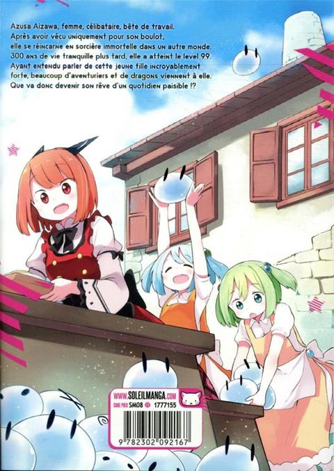Azusa Aizawa, femme, célibataire, bête de travail. Après avoir vécu uniquement pour son boulot, elle se réincarne en sorcière immortelle dans un autre monde. 300 ans de vie tranquille plus tard, elle a atteint le level 99. Ayant entendu parler de cette jeune fille incroyablement forte, beaucoup d'aventuriers et de dragons viennent à elle. Que va donc devenir son rêve d'un quotidien paisible !?
