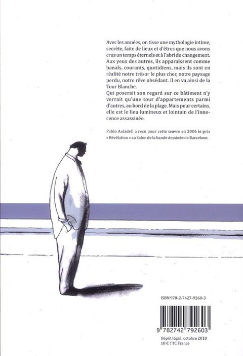 Un homme revient dans la petite station balnéaire où il passait autrefois ses vacances. Hanté par la magie des étés de son enfance, il revit toutes sortes de détails appartenant à sa mythologie intime. Il a gardé intactes les sensations de son premier amour, qui constituent son trésor le plus précieux. La petite fille d’hier doit être une femme à présent. Toutefois ce n’est pas elle, mais une de ses copines, celle que l’on surnommait « Méduse », que l’homme retrouve et avec qui il entame un pas de deux hésitant. La « Tour Blanche » n’est, après tout, qu’un banal immeuble d’appartements planté face à la plage. Le récit progresse selon deux plan narratifs montés en alternance : le passé est évoqué en couleur, le présent en noir, blanc et gris. Le dessin d’Auladell est aussi délicat que sa peinture des sentiments. Son style d’une grande élégance ressuscite toute la luminosité des étés perdus qui ne reviendront pas...