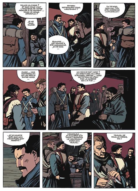 1917, sur la ligne de front franco-allemande : les tranchées... L'offensive débute, les bombes pleuvent sur les tranchées. Porteur d'un message pour l'État-major, Sauveur est contraint de se réfugier dans un abri de fortune. Le spectacle qui l'attend est surprenant. Un groupe d'hommes s'est massé autour d'un cadavre. Un soldat gît dans la boue, un poignard planté dans le dos. Son instinct de policier resurgit aussitôt ! Sauveur s'accroche à ce crime comme un noyé à une bouée, se lançant dans une enquête frénétique. Avec le fol espoir d'oublier l'horreur qui l'entoure, il se jette à corps perdu dans le défi qu'il s'est lancé. Sans relâche, Sauveur traque une vérité qui semble déjà n'intéresser plus personne.