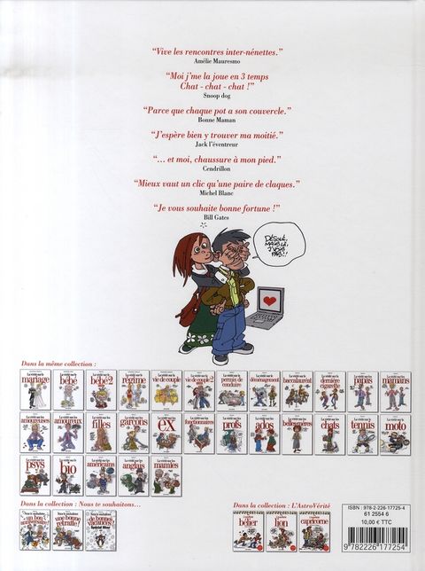 Des mises en scène humoristiques sur les rencontres par Internet. « Vive les rencontres inter-nénettes. » Amélie Mauresmo « Moi j'me la joue en 3 temps Chat - chat - chat ! » Snoop dog « Parce que chaque pot a son couvercle. » Bonne Maman « J'espère bien y trouver ma moitié. » Jack l'éventreur « ... et moi, chaussure à mon pied. » Cendrillon « Mieux vaut un clic qu'une paire de claques. » Michel Blanc « Je vous souhaite bonne fortune ! » Bill Gates