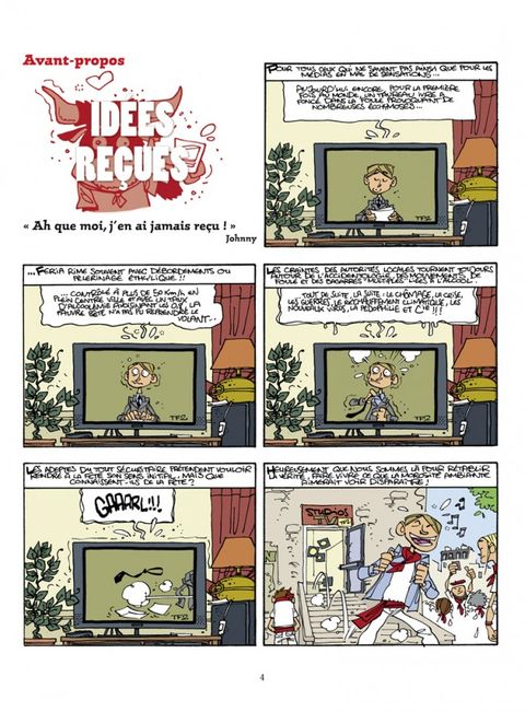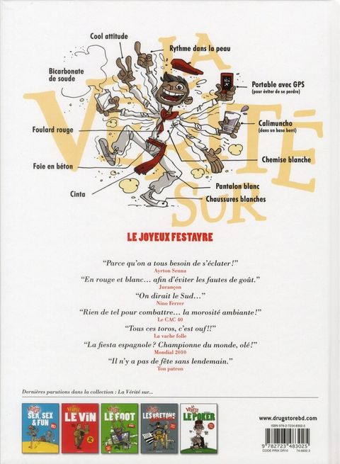 Dans le sud de la France et en Espagne, on fait la fête comme nulle part ailleurs : lâchers de taureaux, fanfares folkloriques, fraternité éthylique. Mais avant de vous lancer tête la première, ouvrez ce précieux et hilarant guide ! Sinon, c'est que vous êtes un fada, fan de chichourle ! Retrouvez dans cet album un calendrier des ferias de l'été - pour suivre les festayres de Nîmes jusqu'à Bayonne -, et des conseils avisés et désopilants pour tâter le terrain ! A vous la folie des corridas et des bodegas !