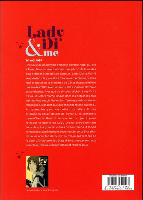 30 août 1997. Une foule de paparazzi s'amasse devant l'hôtel du Ritz à Paris. Tous espèrent obtenir une photo de l'une des plus grandes stars de son époque : Lady Diana. Parmi eux, Marie-Linh, journaliste franco-vietnamienne, suit les faits et gestes de la princesse de Galles depuis le milieu des années 1980. Avec le temps, elle est même devenue sa confidente. Plus que de simples clichés, Lady Di lui a livré ses états d'âmes jusque dans les détails les plus intimes. Mais ce soir, Marie-Linh n'arrive pas à la joindre au téléphone. Elle le sent, quelque chose ne tourne pas rond... À travers les yeux de cette journaliste fictive et grâce au dessin délicat de Yishan Li, Jean-Claude Bartoll trouve le ton juste pour retracer le destin romanesque de Lady Diana, probablement l'une des plus grandes icones « people » de son temps. L'auteur - qui avait couvert le drame à l'époque - se permet même une interprétation toute personnelle des circonstances de sa disparition tragique, qui reste dans toutes les mémoires.