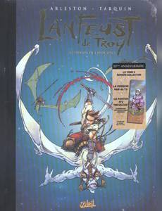 Album cartonné en couleur avec en plus un album noir et blanc en souple. Troy est un monde fascinant, où la magie intervient dans le quotidien de tous. Chacun en effet possède un pouvoir, petit ou grand, plus ou moins utile. L'un a le don de figer l'eau en glace, l'autre le pouvoir d'émettre des pets colorés... Lanfeust, lui, sait fondre le métal d'un seul regard. Dans son village, il est donc tout naturellement devenu apprenti chez le forgeron. Mais le contact d'une épée venue des lointaines Baronnies révèle en lui une puissance exceptionnelle ; il ne dispose plus d'un don unique mais d'un pouvoir absolu et illimité. Accompagné du vieux sage Nicolède et de ses deux filles aux caractères si dissemblables, Lanfeust est emporté dans un tourbillon d'aventures au cours desquelles il croise les plus incongrues, les plus surprenantes et les plus dangereuses des créatures.