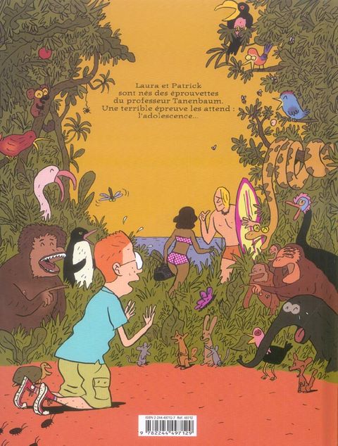 Un savant amnésique échoue sur une île déserte du Pacifique. Souffrant de solitude, il concocte une potion qui va donner aux animaux sauvages l'usage de la parole. C'est de cette manière qu'il génère, à partir d'un banc de moules, une société d'humains dont il perd aussitôt le contrôle. Laura et Patrick naissent ainsi des éprouvettes du professeur Tanenbaum. Ils vont tenter de surmonter une terrible épreuve : l'adolescence. Ils sont accompagnés dans leurs aventures de Pinou, le robot-cyprin philosophe, de Hans, le surfeur poète et de Moucha, la mouche amoureuse. Bref, une île merveilleuse où les animaux parlent, où les centrales nucléaires sont en sable et menacent d'exploser à la moindre averse. Cet album est composé de neuf chroniques sentimentalo- fantastiques. Les dialogues sont teintés de l'humour et de la dérision propres aux deux auteurs.