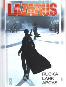 Contient Lazarus (2013) #10-15. En début de recueil, 2 pages intitulées "Dramatis Personae" présentant les divers personnages de la série. Alors qu'un conclave est mis en place, les principaux leaders des différentes familles, leurs conseillers et, plus dangereux, leurs Lazares - ces champions surhumains liés aux familles qui les ont créés -, se retrouvent au même endroit. Et c'est au coeur d'une délicate danse de mondanités que se décide rien de moins que la domination du monde. Très vite, deux camps émergent pour décider qui suivre : Jakob Hock ou Malcolm Carlyle. Forever, le Lazare de la famille Carlyle, commence à mettre en doute sa fidélité envers sa famille et son père, lorsque celui-ci lui demande de tuer son propre frère : Jonah.