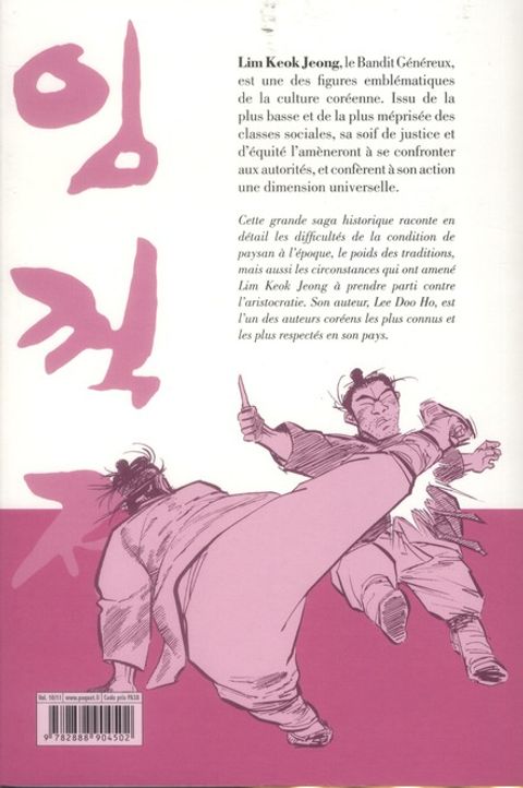Lim Keok Jeong, le Bandit Généreux, est une des figures emblématiques de la culture coréenne. Issu de la plus basse et de la plus méprisée des classes sociales, sa soif de justice et d'équité l'amèneront à se confronter aux autorités, et confèrent à son action une dimension universelle. Cette grande saga historique raconte en détail les difficultés de la condition de paysan à l'époque, le poids des traditions, mais aussi les circonstances qui ont amené Lim Keok Jeong à prendre parti contre l'aristocratie. Son auteur, Lee Doo Ho, est l'un des auteurs coréens les plus connus et les plus respectés en son pays.