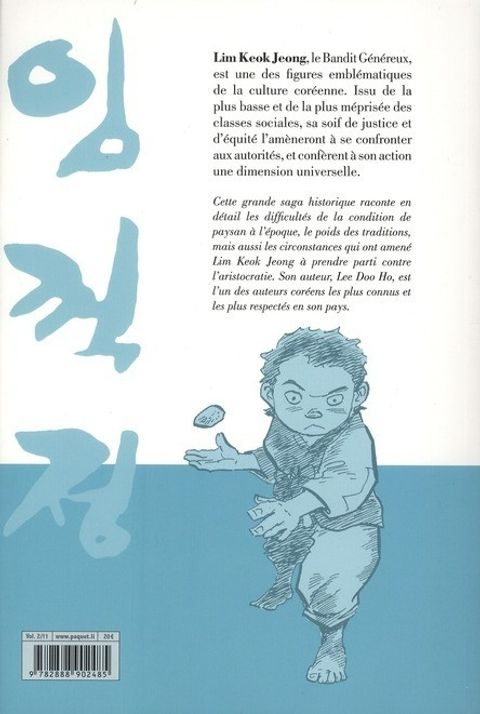 Lim Keok Jeong, le Bandit Généreux, est une des figures emblématiques de la culture coréenne. Issu de la plus basse et de la plus méprisée des classes sociales, sa soif de justice et d'équité l'amèneront à se confronter aux autorités, et confèrent à son action une dimension universelle. Cette grande saga historique raconte en détail les difficultés de la condition de paysan à l'époque, le poids des traditions, mais aussi les circonstances qui ont amené Lim Keok Jeong à prendre parti contre l'aristocratie. Son auteur, Lee Doo Ho, est l'un des auteurs coréens les plus connus et les plus respectés en son pays.