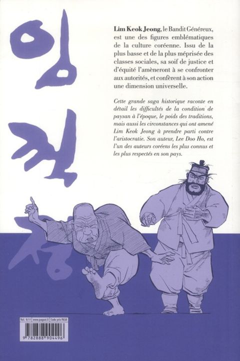 Lim Keok Jeong, le Bandit Généreux, est une des figures emblématiques de la culture coréenne. Issu de la plus basse et de la plus méprisée des classes sociales, sa soif de justice et d'équité l'amèneront à se confronter aux autorités, et confèrent à son action une dimension universelle. Cette grande saga historique raconte en détail les difficultés de la condition de paysan à l'époque, le poids des traditions, mais aussi les circonstances qui ont amené Lim Keok Jeong à prendre parti contre l'aristocratie. Son auteur, Lee Doo Ho, est l'un des auteurs coréens les plus connus et les plus respectés en son pays.