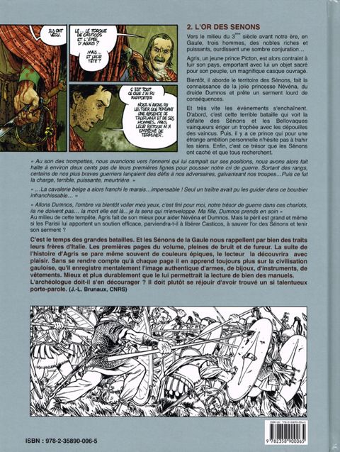 Vers le milieu du 3ème siècle avant notre ère, en Gaule, trois hommes, puissants, ourdissent une sombre conjuration. Agris, un jeune prince Picton, est alors contraint à fuir son pays, emportant avec lui un objet sacré pour son peuple, un magnifique casque ouvragé. Bientôt, il aborde le territoire des Sénons, fait la connaissance de la jolie princesse Névéna, du druide Dumnos et prête un serment lourd de conséquences. Les événements s'enchaînent. Il y a d'abord cette terrible bataille. « Au son des trompettes de guerre, nous avancions vers l'ennemi qui lui campait sur ses positions, nous avons alors fait halte à environ deux cents pas de leurs premières lignes pour pousser nos cris de guerre. Sortant de nos rangs, certains de nos plus braves guerriers lançaient des défis à nos adversaires, galvanisant nos troupes.Puis ce fut la charge, terrible, puissante, meurtrière. »