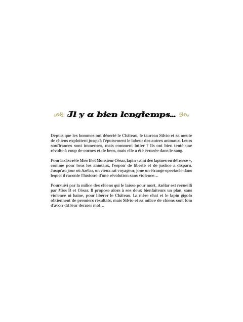 "Le Château des Animaux tome 2 - Les marguerites de l'hiver" : J'avais déjà beaucoup apprécié le premier tome, mais je dois dire que celui-ci élève encore davantage le niveau, et j'aime encore plus ! Je me suis totalement laissé emporter par l'intrigue et la préparation de la révolution. J'ai (...) Voir le commentaire