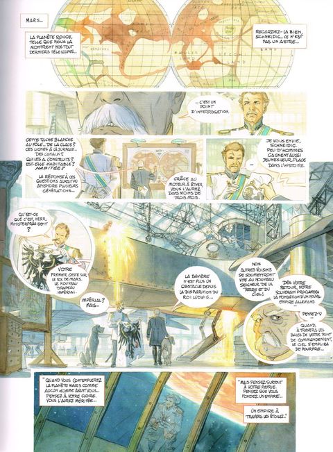 "1870. En plein dix-neuvième siècle, le sort de la Terre se joue sur Mars ! Dans cette suite de la série à succès «Le Château des étoiles», récompensée par de nombreux prix, Séraphin et ses amis sont de retour sur Terre. Après avoir révélé au monde le secret du voyage spatial, ils ont trouvé refuge dans un manoir breton. Mais leur engin volant est désormais l'objet de toutes les convoitises ! Alors que le père de Séraphin est en voyage à Londres, le manoir est cerné par des brumes lourdes de menaces... Spectres, ou espions prêts à tout pour mettre la main sur le précieux engin ? Nouvelles machines, complots internationaux, têtes couronnées, expéditions au-delà de l'espace... La course à l'éther est lancée, et la paix sur Terre est désormais entre les mains de Séraphin et des Chevalier de Mars ! Tout public. 1870. En plein dix-neuvième siècle, le sort de la Terre se joue sur Mars ! Dans cette suite de la série à succès «Le Château des étoiles», récompensée par de nombreux prix, Séraphin et ses amis sont de retour sur Terre. Après avoir révélé au monde le secret du voyage spatial, ils ont trouvé refuge dans un manoir breton. Mais leur engin volant est désormais l'objet de toutes les convoitises ! Alors que le père de Séraphin est en voyage à Londres, le manoir est cerné par des brumes lourdes de menaces... Spectres, ou espions prêts à tout pour mettre la main sur le précieux engin ? Nouvelles machines, complots internationaux, têtes couronnées, expéditions au-delà de l'espace... La course à l'éther est lancée, et la paix sur Terre est désormais entre les mains de Séraphin et des Chevalier de Mars ! Tout public. "