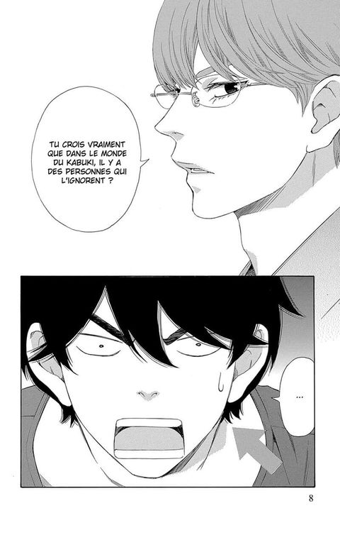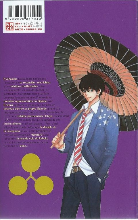 Kyônosuke n'a toujours pas trouvé l'occasion de se réconcilier avec Ichiya et les relations conflictuelles entre les deux écoles au sein desquelles ils s'entraînent n'arrangent rien à l'affaire. Le temps joue contre lui et l'heure de sa première représentation en binôme avec Keitarô approche à grands pas. Ce dernier, désireux d'écrire sa propre légende, prend son nouveau partenaire sous son aile et, ensemble, ils livrent une sublime performance au public. Ichiya, présent dans la salle, ressent la distance qui le sépare de son ancien binôme et en sort abattu... Puis, ainsi s'écoule une année. Alors que le disciple de la Sawayama se voit enfin promettre le nom de succession de "Rinshirô", qui lui ouvrira la grande voie du kabuki, le sort lui joue un nouveau tour en la personne de Yûna...