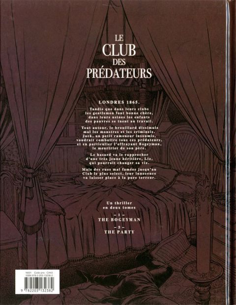 Suite et fin du récit horrifique par Mangin et Dupré. Londres 1865. Tandis que dans leurs clubs les gentlemen font bonne chère, dans leurs usines les enfants des pauvres se tuent au travail. Tout autour, le brouillard dissimule mal les monstres et les criminels. Jack, un petit ramoneur insoumis, voudrait combattre tous ces prédateurs, et en particulier l'effrayant Bogeyman, le meurtrier de son père. Le hasard va le rapprocher d'une très jeune héritière, Liz, qui pourrait changer sa vie. Mais des rues mal famées jusqu'au Club le plus select, leur innocence va laisser place à la pure terreur.