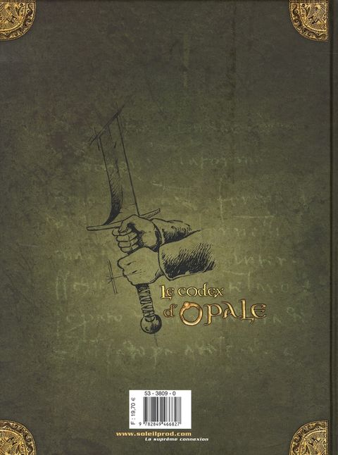 Savez-vous comment volent les Nefs Nispanthes ? Qu'elle est la hiérarchie des prêtres-soldats de la Lumière ? Quel est le secret des Polophyntes ? Vous voudriez mieux connaître les trente-trois cercles démoniaques ? Savoir quels sont les champignons commestibles et les arbres dont on peut tirer des arcs souples et puissants ? Toutes ces réponses sont dans Le Codex d'Opale. Dans l'esprit des Encyclopédies de Troy, ce codex s'adresse tant aux amateurs de l'univers, qu'aux rôlistes et/ou aux amoureux du graphisme. Le dessin souple et précis de Philippe Pellet s'exprime à travers un florilège d'illustrations et de textes documentaires imaginaires.