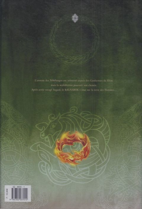 "Yngvild, la porteuse d'une épée qui jadis fut celle de Siegfried, tente de rallier le domaine des Nornes, espérant y trouver des réponses à ses questions ainsi que le moyen de sauver Bjarnulf de la terrible malédiction qui pèse sur lui. Afin de protéger les Völsung du fléau qui ravage Elfheim, Ewir et le roi elfe Iduril sont obligés de franchir le domaine de Njord qui a perdu la raison depuis la mort de ses enfants. Sur Mannheim, Phocas découvre avec horreur que l'hiver a étendu son emprise sur tout l'empire d'Orient... Lentement les destinées éparses se rejoignent, à nouveau la malédiction de l'anneau mène la danse. "