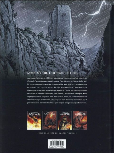 1243. Lansquenet, Aimery, Escartille, Héloïse et les Croisés de l'Ombre arrivent au pied du château de Montségur. Ils sont accueillis par les seigneurs du lieu qui acceptent de leur prêter asile s'ils défendent le château avec eux. Car l'Occitanie est à feu et à sang. Chaque jour les inquisiteurs massacrent les Cathares qui tombent sous leurs griffes. Et le château de Montségur est leur prochaine étape...Arnaud Delalande, avec Éric Lambert aux pinceaux, conclut en apothéose l'adaptation de son roman L'Église de Satan : une magnifique épopée cathare, pleine de bruit et de fureur.À l'occasion de la sortie de cet ultime tome, l'ensemble de la série sera rééditée sous le label Glénat.