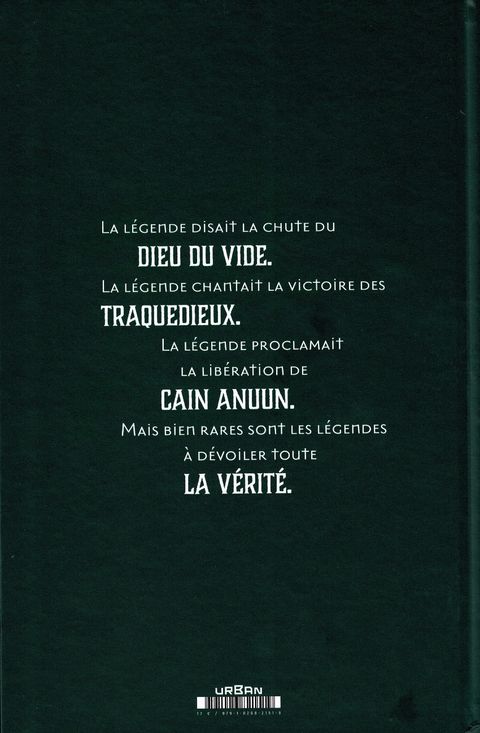 La légende disait la chute du Dieu du vide. La légende chantait la victoire des Traquedieux. La légende proclamait la libération de Cain Anuun. Mais bien rares sont les légendes à dévoiler toute la vérité. Contient les épisodes US The Last God #1-3.