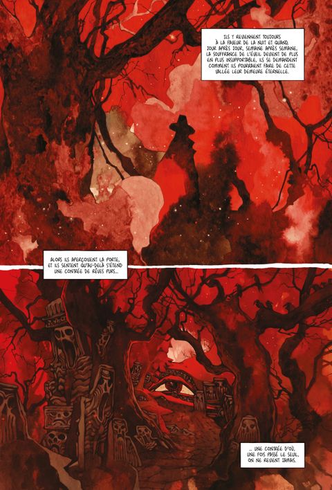 " Personne ne sait à quoi a ressemblé la dernière journée de cet homme qui s'appelait Howard Phillips Lovecraft. Personne ne sait, sauf moi. Car moi, j'y étais. J'y étais et je vais tout vous raconter. "L'auteur français Romuald Giulivo et l'artiste polonais Jakub Rebelka (Origins, Judas...) se sont réunis pour nous transmettre le récit onirique des ultimes moments du célèbre auteur américain. Pièce de théâtre sous forme de dialogues intérieurs, Le Dernier Jour de Howard Phillips Lovecraft revisite les contrées imaginaires de l'auteur, les souvenirs de l'homme, ses colères et ses zones d'ombre. On y suit le dernier voyage d'un homme complexe et torturé faisant face à ses choix, ses errances et ses renoncements, persuadé que seule une nuit éternelle réconfortante attend les hommes au moment de leur mort. Mais un auteur n'est-il pas par essence immortel grâce à ses récits dont nous sommes les dépositaires ? Bâti comme une étrange cathédrale gothique, Le Dernier Jour de Lovecraft est un roman graphique hors norme faisant de la fin d'un homme le début d'un mythe. Pour sa première incursion dans le monde séquentiel, Romuald Giulivo réalise un coup de maître en puisant tout autant dans la vie du célèbre auteur que dans le domaine du rêve cher à Gaston Bachelard. Au dessin, le trop rare Jakub Rebelka, amoureux transi de la prose du reclus de Providence, atteint des sommets d'illustrations organiques non euclidiennes. " Jakub Rebelka est un génie absolument fou. Une myriade de choses s'animent dans chacune de ses cases, mais elles demeurent apaisantes et magnifiques. Comment diable fait-il ça ? " Mike Mignola