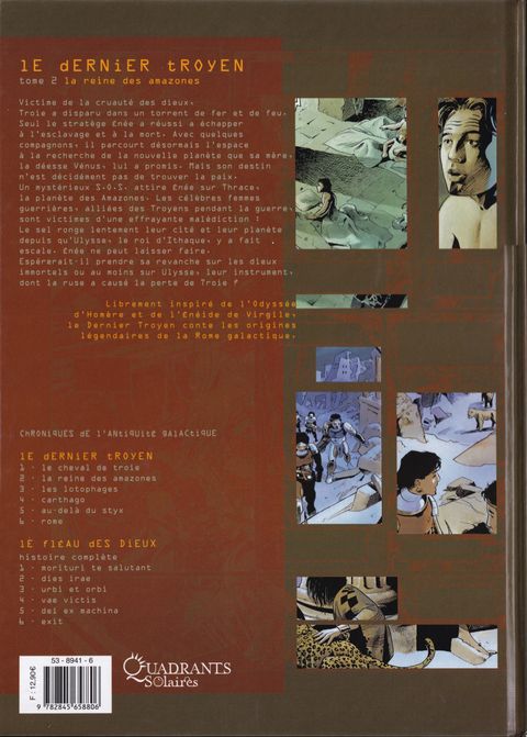 La Reine des Amazones continue d'explorer les origines de l'empire romain spatial en s'inspirant librement des épopées mythologiques d'Homère et de Virgile. Troie est tombée, victime de la cruauté des dieux. Seuls Énée et quelques troyens sont parvenus à échapper au massacre. Mais les dieux n'ont pas fini de les mettre à l'épreuve. Un mystérieux s.o.s. les attire sur Thrace, la planète des amazones. Alliées des troyens pendant la guerre, elles semblent être victimes d'une malédiction qui ronge lentement leur cité. Si Énée leur vient en aide, peut-il alors espérer prendre sa revanche sur les dieux responsables de ses malheurs oe
