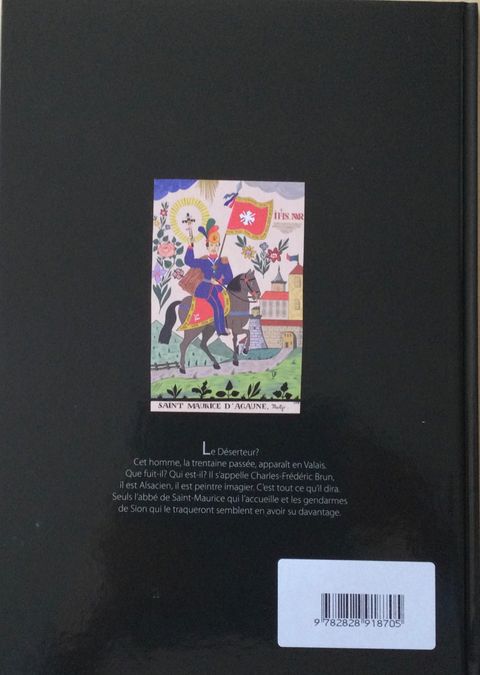 L'histoire en images d'un déserteur mystérieux qui a marqué l'imagerie religieuse. Une BD qui a la particularité de mettre en cases les histoires qu'elle raconte La vie de Charles-Frédéric Brun commence par une grande plage blanche de trente-neuf ans. Il serait né à Colmar de parents inconnus en 1804 ou 1811. Sans acte de naissance, un personnage est exposé, la fiction peut le saisir comme la mort saisit le vif. Les auteurs ont choisi 1804. Ses dons le prédestinaient à devenir un artiste de l'image. Avec le retour de la royauté et le pouvoir restauré de l'Eglise à cette époque, l'imagerie religieuse offre le débouché le plus sûr pour un jeune talent. Il exerce en Alsace, plus loin dans la vallée du Rhône et peut-être jusque dans le Midi, une vie ambulante d'imagier qui migre aux beaux jours vers les lieux de pèlerinage bien achalandés. Sur les chemins, il se dira qu'il " aurait " tué son capitaine. Il quitte la France pour rejoindre l'abbaye de Saint-Maurice, en Suisse, où des chanoines l'attendent. On lui propose alors à lui, le lettré, d'apprendre à lire et à écrire aux analphabètes des vallées. Mais jamais il ne fera un bon maître d'école. Sa mission est celle d'un imagier de Dieu. La présence de cet étranger ne passe pas inaperçue dans la région, des gendarmes sont à la trousse du proscrit français. Il fuit en Savoie, sans laisser de trace pendant plusieurs années. C'est à l'automne 1846 qu'il réapparaît, amaigri. En possession de couleurs et de papier, le temps est venu pour lui de commencer sa mission. Il mendie sa nourriture qu'il paye en retour avec des images inspirées par le Très-Haut. Plus tard, il acceptera d'entrer chez ceux qui les lui commandent pour les réaliser plus à son aise. Il devient peintre mural et peintre de chapelle. Les gendarmes le recherchent toujours, mais il est sous la protection des autorités religieuses. Tout le monde a beaucoup d'admiration pour lui. L'homme a aussi d'autres talents. Il connaît la vertu des plantes. Improvisé médecin de campagne, il soigne ses "patients" avec une pharmacopée bien à lui. Durant plus de vingt ans, il sillonne les bois et les vallées, de village en village. Il meurt en 1871 à 67 ans, après une vie de sacrifice qu'il s'est lui-même infligée.