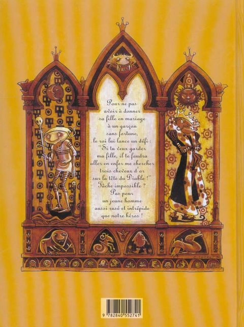 Pour ne pas avoir à donner sa fille en mariage à un garçon sans fortune, le roi lui lance un défi : " si tu veux garder ma fille, il te faudra aller en enfer me chercher trois cheveux d'or sur la tête du diable ! " tâche impossible ? pas pour un jeune homme aussi rusé et intrépide que notre héros !