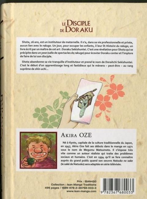 Shota, 26 ans, est un instituteur de maternelle banal. Il n'a, dans sa vie professionnelle et privée, aucun lien avec le rakugo. Un jour, pour occuper les enfants, il leur lit Histoire du rakugo, un livre écrit par un maître de cet art : Doraku Sekishuntei. C'est une révélation pour Shota qui se précipite dans un yose (salle de performances de Rakugo) pour écouter Doraku conter et l'implore de faire de lui son disciple. Shota abandonne sa vie tranquille d'instituteur et prend le nom de Doraitchi Sekishuntei. C'est le début d'un apprentissage long et fastidieux qui le mènera - peut-être - au rang suprême de shin-uchi... Créé à l'époque Edo, le rakugo comprend deux courants, celui de Tokyo et celui d'Osaka. Le premier se distingue par une gestuelle plus raffinée. Une soirée dans un théâtre de rakugo voit se succéder deux à quatre conteurs. Les histoires jouent sur le registre de l'humour, des sentiments ou de la peur avec les histoires de fantômes. Le Japon compte aujourd'hui environ 600 rakugo-ka. Avant de devenir conteur confirmé (shin-uchi), l'élève accomplit trois ans d'apprentissage auprès d'un maître et doit ensuite franchir deux grades (zenza et futatsume). Le rakugo est très populaire au Japon grâce à une émission télévisée qui diffuse tous les dimanches après-midi depuis 45 ans - ce qui en fait la plus ancienne émission de télévision - des joutes d'improvisations de conteurs.