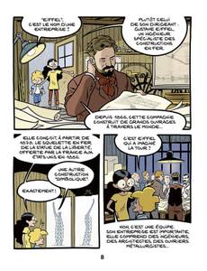 Nino ne comprend pas qu'Ariane perde du temps à faire un château de cartes : c'est tellement éphémère ! Mais sa grande sœur lui explique que de rêves d'éphémère naissent parfois des légendes éternelles. Par exemple la Tour Eiffel, voulue comme une prouesse technique censée créer l'événement lors de l'Exposition universelle de Paris, en 1889... Prévue pour être démontée ensuite, elle va pourtant s'inscrire à jamais dans le paysage et l'imaginaire parisiens. Vous pensiez tout connaître de la Tour Eiffel ? Le 30e album du Fil de l'Histoire raconté par Ariane et Nino vous fera voir ce monument unique sous un œil tout neuf ! Avec comme toujours beaucoup d'humour et d'infos inattendues pour jeunes et moins jeunes ! Un monument de la pédagogie à la découverte d'un monument mondialement connu !