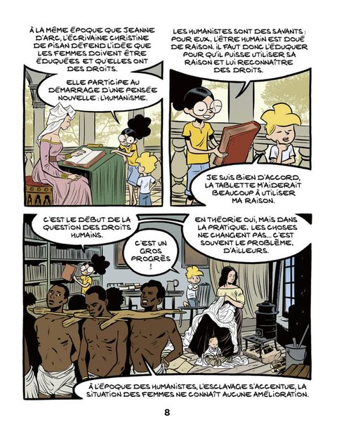 Nino boude, car il estime que sa maman bafoue ses droits en lui refusant de jouer à la tablette. Ariane lui fait remarquer que les droits, ça s'obtient par de la revendication explicative plutôt que par la bouderie ! C'est d'ailleurs ce que font les femmes depuis si longtemps afin de tendre à l'égalité avec les hommes... L'occasion pour Nino de découvrir les profondes inégalités dont ont souffert les femmes au fil des siècles. Et l'occasion pour Ariane de lui raconter l'histoire du féminisme, un combat plus que jamais nécessaire et d'actualité ! Historien et enseignant de formation, Fabrice Erre explore les origines et les problématiques de la lutte féministe en se basant sur des faits historiques et autres constats de société avérés. Aussi éclairant que pédagogique, son formidable travail est comme toujours mis en images par l'incontournable Sylvain Savoia.