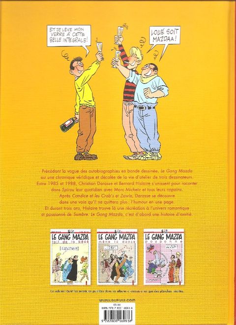 Ce premier volume de l'intégrale comprend les trois premiers albums de la série : "Le gang Mazda fait de la bédé", "Le gang Mazda mène la danse" et "Le gang Mazda pouponne".