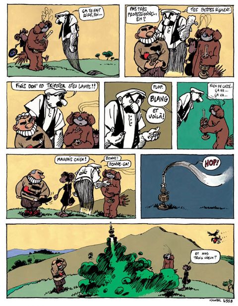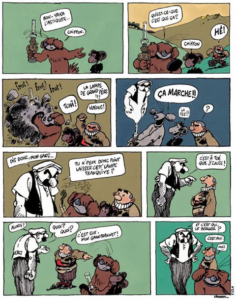 Attendu depuis cinq ans, ce nouvel album ravira les fans de cette série d'humour signée F'murrr, un de ces grands auteurs qui a d'ailleurs inspiré toute une génération d'auteurs aujourd'hui présents dans Poisson Pilote... Prenez un cheptel de moutons toujours prompts à râler ou à négocier de meilleures conditions de travail, un berger et un chien qui vont avec. Ajoutez un fonctionnaire zélé parlant un drôle de langage (norme européenne !), un militant écolo aux allures de José Bové, une famille de touristes belges, un chien aboyeur qui communique par talkie-walkie, un aigle royal mis à mal et bien d'autres personnages hauts en couleur que l'on verrait volontiers dans un film de Tati ou dans un dessin animé de Tex Avery - et vous obtiendrez ce qui fait la saveur si particulière d'un album du Génie des alpages ! Le plus fort est que l'on se prend à lire et relire chaque gag, à déguster chaque dialogue, à surveillez chaque image contenant souvent des détails croustillants. Un régal. Génial, en fait.