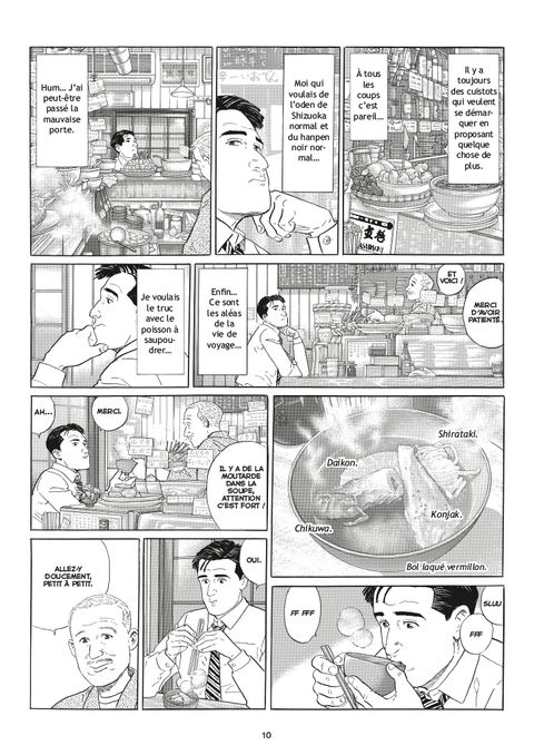 C'est un manga extraordinaire, sur la vie ordinaire d'un homme ordinaire et qui aime les petits plaisirs de la vie. Au fil de ces instants de quotidien, on se laisse emporter dans un voyage à travers la cuisine japonaise ; on a hâte de découvrir le prochain mets avec le narrateur. Le talent de Jirô Taniguchi nous enivre et on se laisse perdre avec plaisir dans ces petits riens. Cette fois-ci, on découvre un peu plus du Japon : Tokyo, bien sûr, mais également les départements de Shizuoka ou Tottori. Et on finit en beauté avec Paris, où notre gourmet solitaire savoure une cuisine algérienne, pour notre plus grand plaisir.