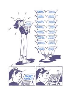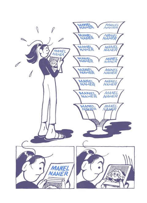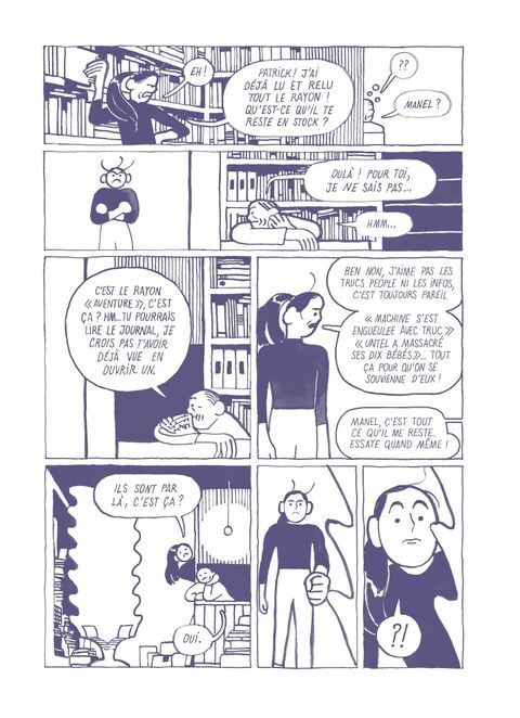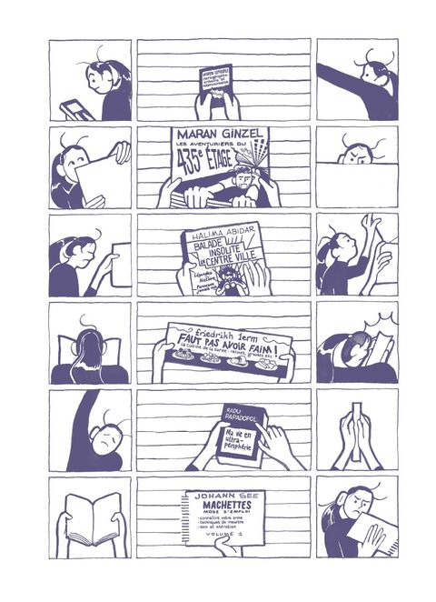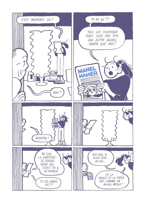 "Mais... Manel Naher, c'est moi !" Qui est donc cette autre Manel Naher, qui fait la Une des journaux ? Elle fait de l'ombre à Manel Naher, la vraie Manel Naher, l'héroïne de cette histoire ! Elle ne se rend pas compte qu'elle la met en danger, la vraie Manel Naher, en ayant tout ce succès ? Vous comprenez, si tout le monde se met à penser à cette Manel Naher qui devient célèbre, au lieu de penser à Manel Naher, qui passe ses journées au fond d'une petite librairie... Eh bien : on risque de l'oublier, notre Manel. Et dans ce monde, si l'on ne pense plus à vous, alors vous mourrez, tout simplement. Penser à quelqu'un, c'est lui donner de la Présence. L'horizon, ici, est barré par les milliers de noms qui s'affichent de toutes parts, et les mendiants ne quémandent qu'une seconde d'attention... Survivre pour certains, devenir Immortel pour d'autres : c'est la Présence qui fait tourner cette ville tentaculaire. Manel, elle, tournerait volontiers le dos à tout ça ; mais là-bas, au delà des gratte-ciels, il n'y a que le Grand Vide, d'où personne n'est jamais revenu... Léa Murawiec met ici son dessin virtuose au service d'un récit riche et lumineux, au rythme bouillonnant. Son talent et sa maîtrise illuminent ce premier livre enthousiasmant, et on se laisse avec bonheur emporter dans ce Grand Vide !