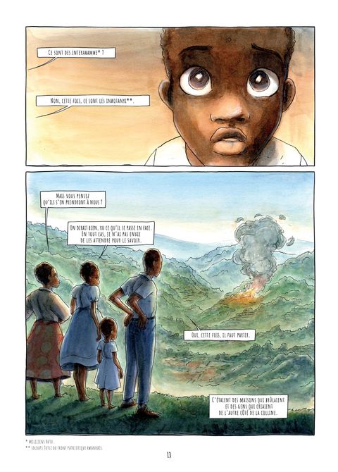 Gitarama, 1994, au sud au Rwanda. Alice, 5 ans, vivait une enfance paisible auprès de ses parents et ses petites soeurs. Sa vie bascule subitement lorsqu'éclate le génocide des tutsis et qu'elle se retrouve ensuite contrainte de quitter son village. Avec sa famille mais aussi Rose, une petite tutsi, elle part sur les routes brûlantes de la République démocratique du Congo - le Zaïre, à l'époque - fuyant devant l'avancée des troupes du FPR C'est dans ce climat de totale insécurité qu'elle grandira, de camps de réfugiés en camps de fortune, retrouvant parfois une vie presque normale avant de nouvelles attaques, une nouvelle fuite et la mort qui rôde, toujours... Jusquà ce jour où, suite à une nouvelle attaque, elle perd la trace de sa mère, et se retrouve seule avec sa petite soeur. Elle finira par être reccueillie et rapatriée au Rwanda en novembre 1997, mais restera de nombreuses années sans nouvelles de sa famille... Gaspard Talmasse livre ici un témoignage singulier, poignant et d'une grande justesse, celui de son épouse. Pour raconter cette odyssée de plusieurs milliers de kilomètres, l'auteur choisit d'adopter le regard d'enfant d'Alice, afin de retranscrire au mieux sa vérité.