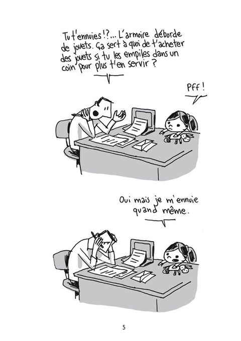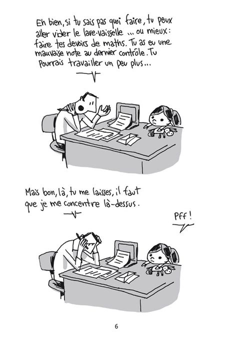 S'acharner sur son fils pour remporter une partie de jeu vidéo. Redoubler de mauvaise foi envers sa fille après avoir perdu à cache-cache. Pire, inventer une histoire de tueur psychopathe à la tombée de la nuit... Guy Delisle, un mauvais père ? Non, un auteur de bande dessinée qui sait puiser l'imagination là où elle se trouve, avec un sens aigu de l'observation et une bonne dose d'autodérision.